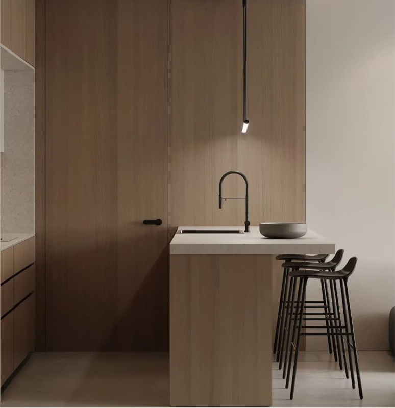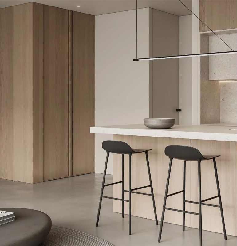 無主燈設計的舒爽,加劇默契的輕盈體量,曲綫呼應,溫潤色系,呈現出極簡雅致。