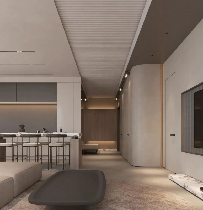 内心的寧靜,具有生命力的空間,總是在不斷生長的過程中呈現。石材,金屬皮革與玻璃,構成空間豐富的層次細節,綫條勾勒生活的藝術雅奢,重新建構當代生活的詩意細節。
