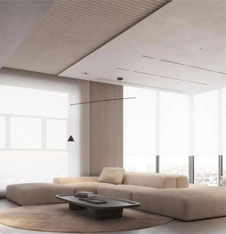 引景入室,以光滌塵,與室内空間動靜相襯,賦予流動的言語,增添不同層次的感官體驗,讓其形成虛實的意境。